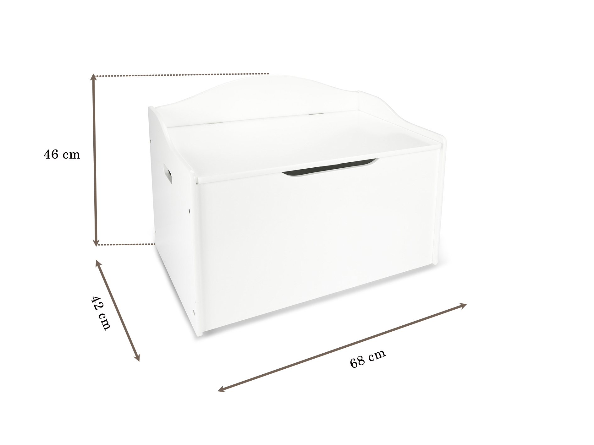 Coffre XL à jouets blanc en bois Case a couvercle à charnière, il fonctionne également comme un siège. L'objet est fait entièrement des panneaux de fibres à densité moyenne (MDF) de meilleure qualité -12 mm d'épaisseur. Les dimensions du coffre: 68 x 42 x 46 cm. Poids environ 7 kgs. Dimensions de l'emballage (longueur, largeur, hauteur): 52x11x73 cm L'article pour montage - notice y jointe. Découvrez nos autres meubles avec les animaux dessinés, gràce auxquels vous allez compléter entièrement la chambre de votre gamin en la rendant encore plus chaleureuse!