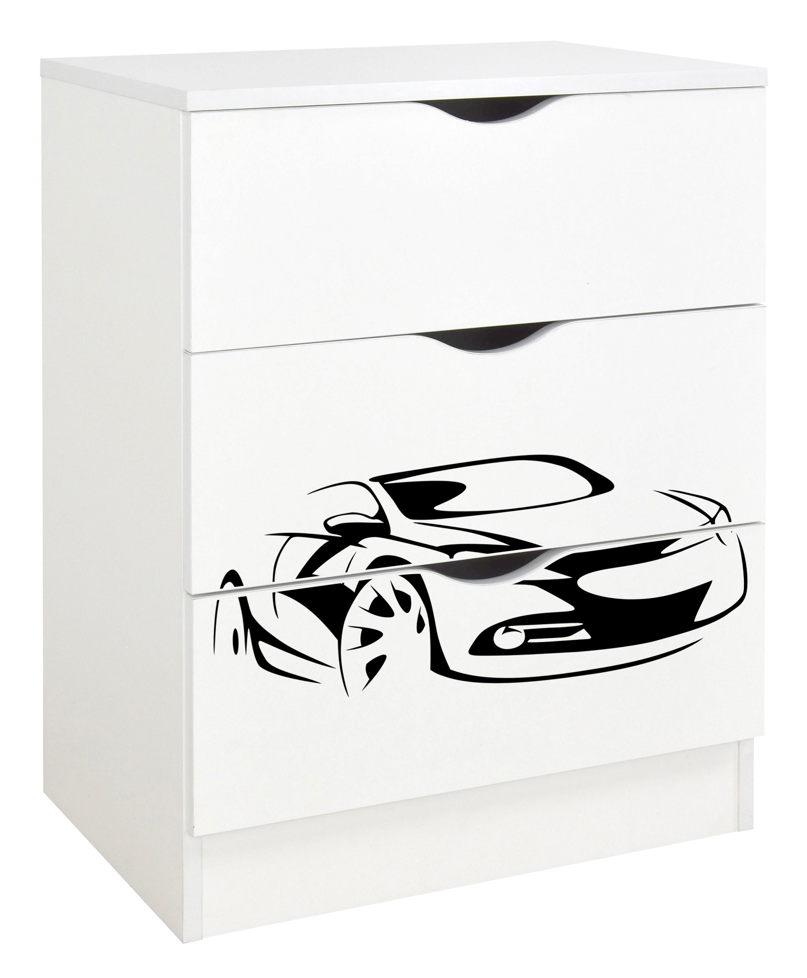Commode blanche avec les tiroirs ROMA /motif Voiture/