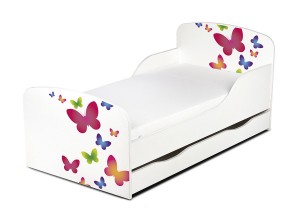 Lit Leomark motif Papillons- une garantie de bon choix - base stable et durable. L'objet est fait entièrement des panneaux de fibres à densité moyenne (MDF) de meilleure qualité -18 mm d'épaisseur. Lit bébé est neuf et pratique