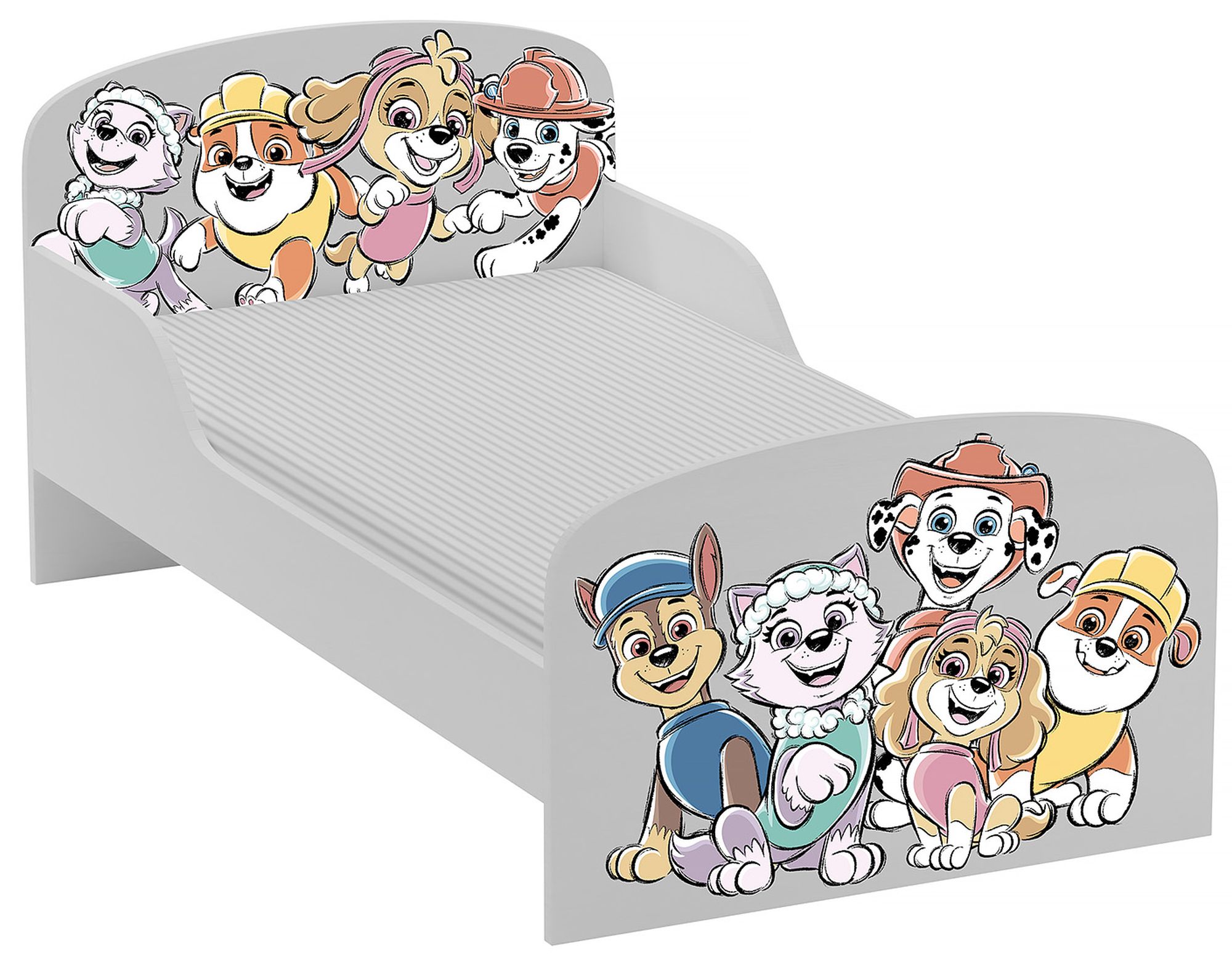 Lit d'enfant Paw Patrol La Pat' Patrouille avec Chase, Stella et Leurs Amis – Lattes + Matelas Inclus